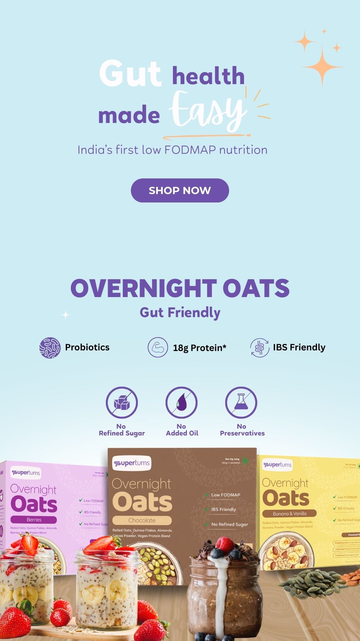 Somendra SinghSupertums LOW FODMAP oats is a game-changer for people with sensitive tummies. It’s delicious and has just the right macro balance. Above all, the best part is that it's light on your tummy and does not give you bloating or acidity