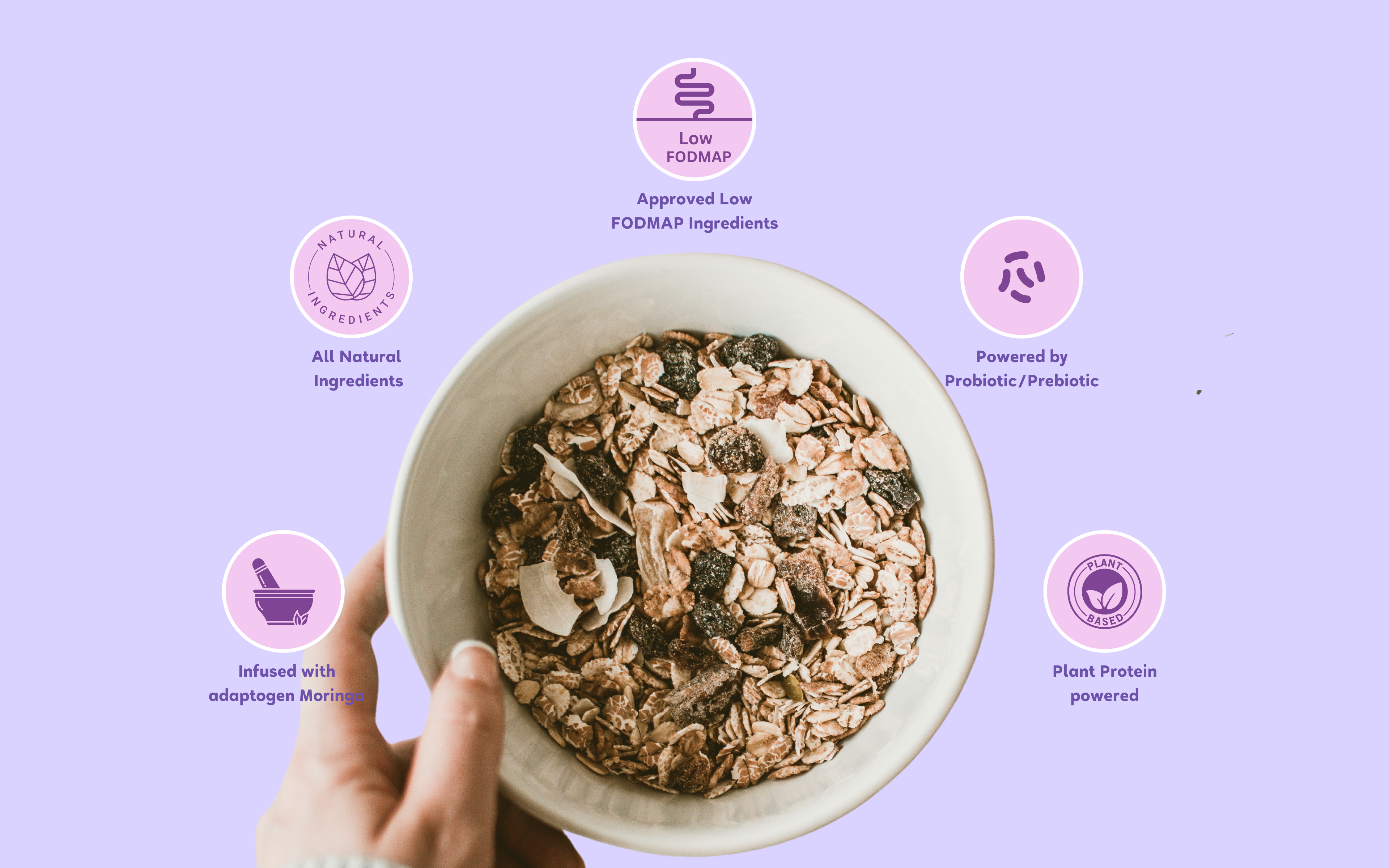 After years of research and testing, we've formulated food products enriched with a blend of ancient grains, prebiotics and adaptogens.