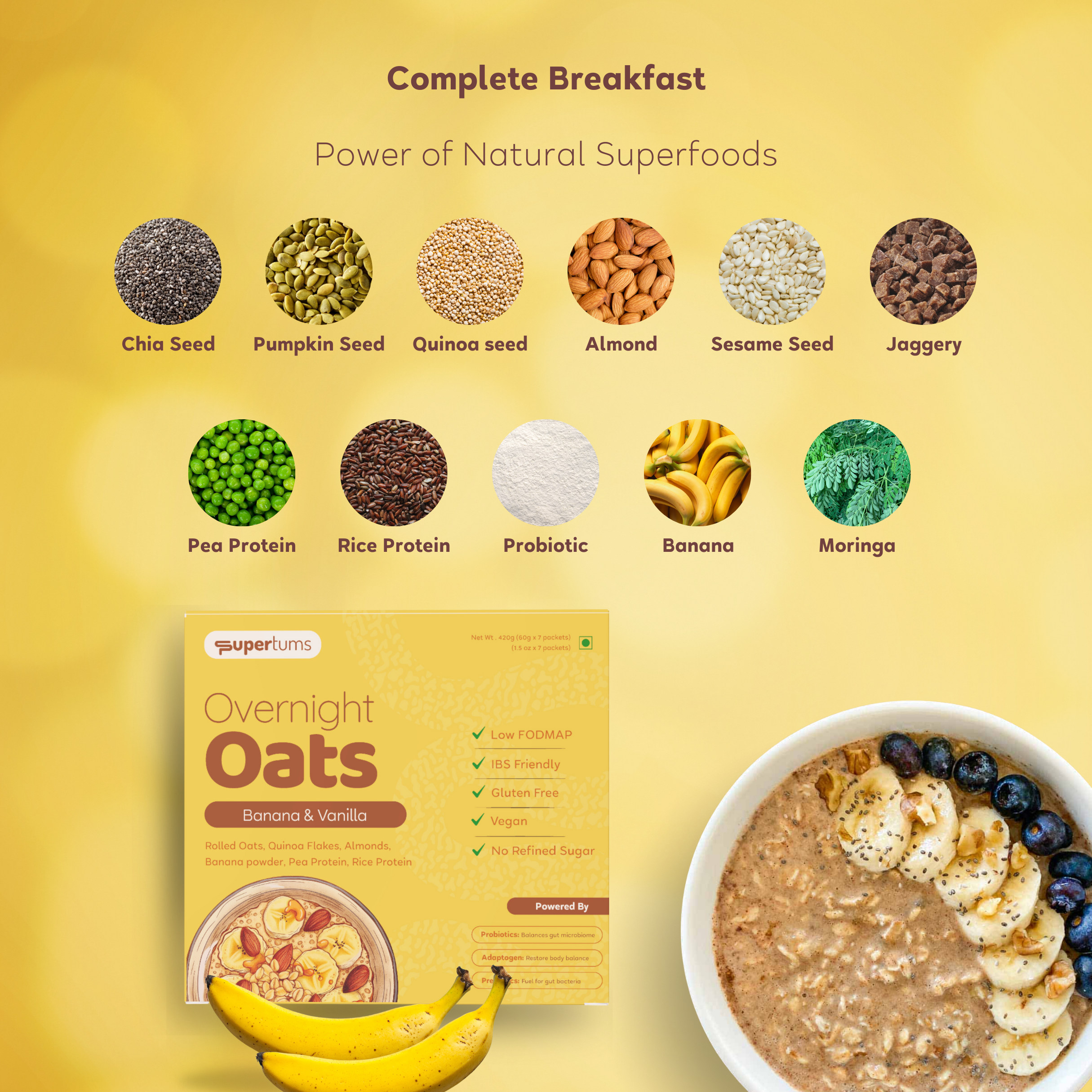 Supertums Overnight Oats Banana & Vanilla 420g | Low FODMAP | High in Protein | All Natural